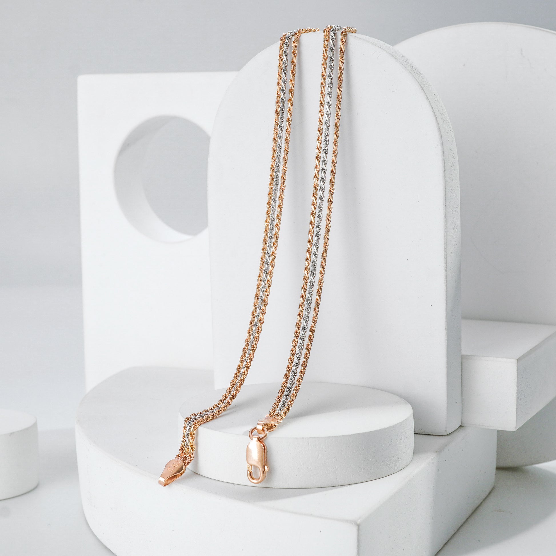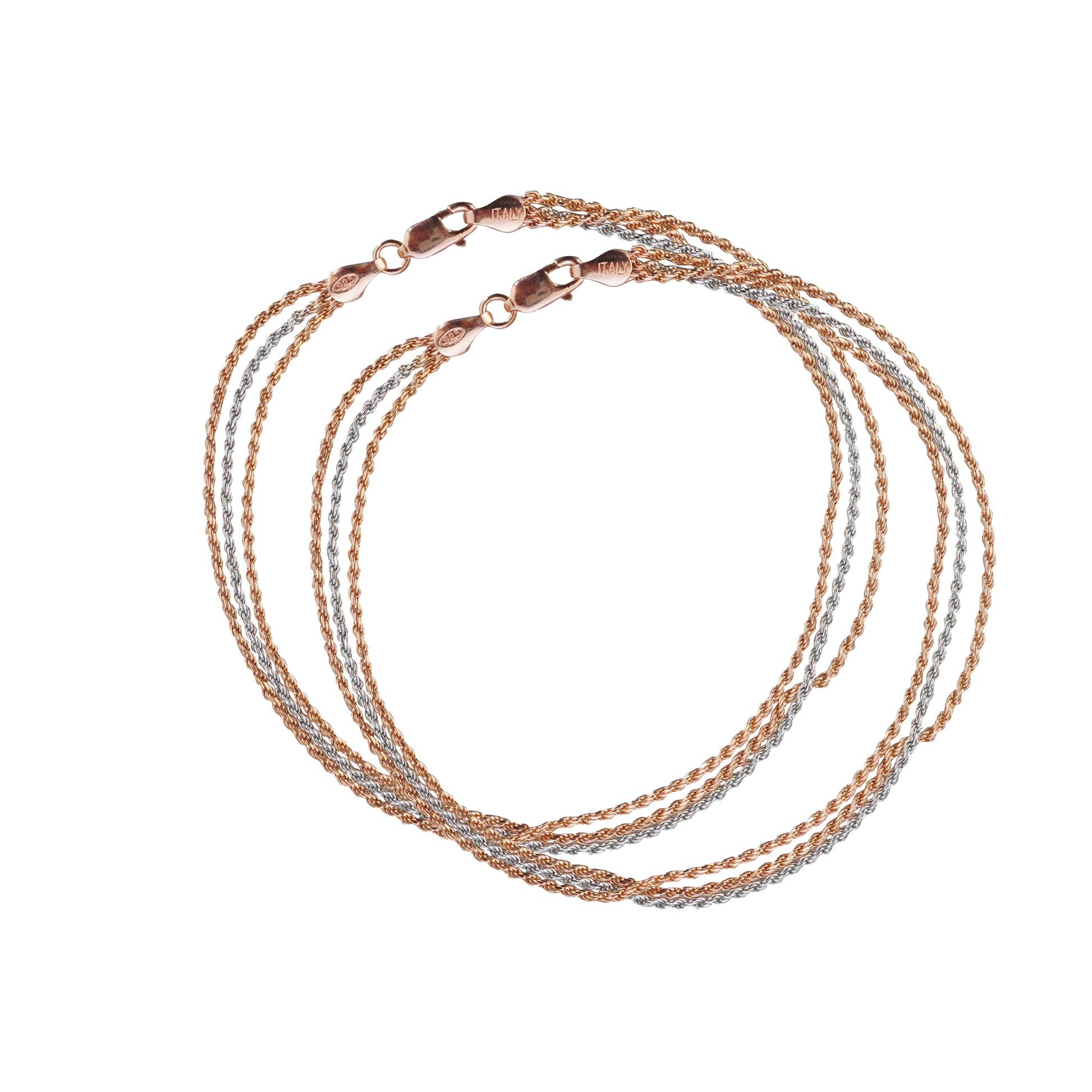 Braided Harmony Anklets, featuring interwoven strands of gold and silver in a delicate braided design. These anklets offer a unique and intricate detail, perfect for complementing any outfit with a touch of refined style.
