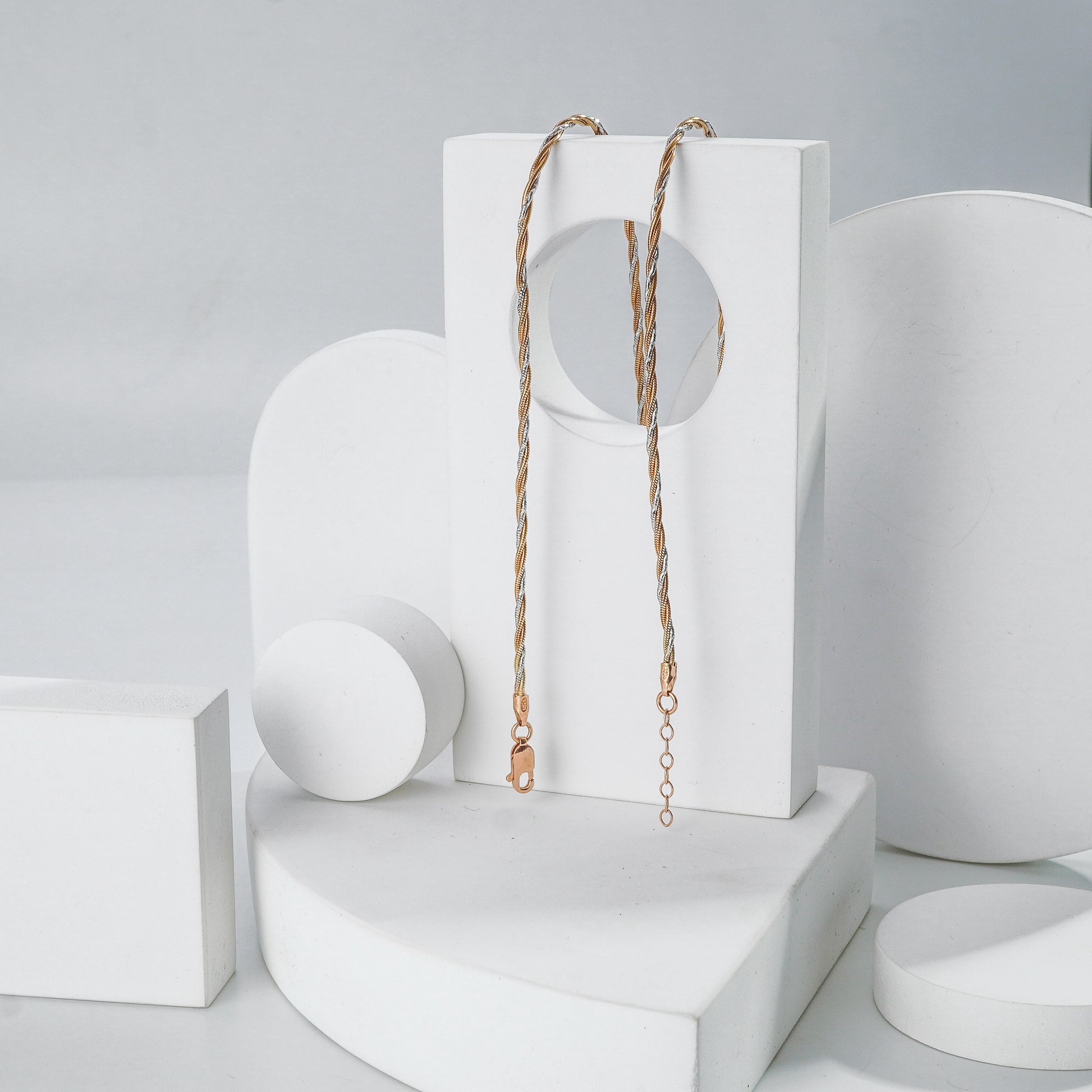 The Braided Twist Anklets, featuring a unique blend of intertwined gold and silver strands. These anklets bring a distinctive touch to any ensemble, ideal for both everyday wear and special occasions.