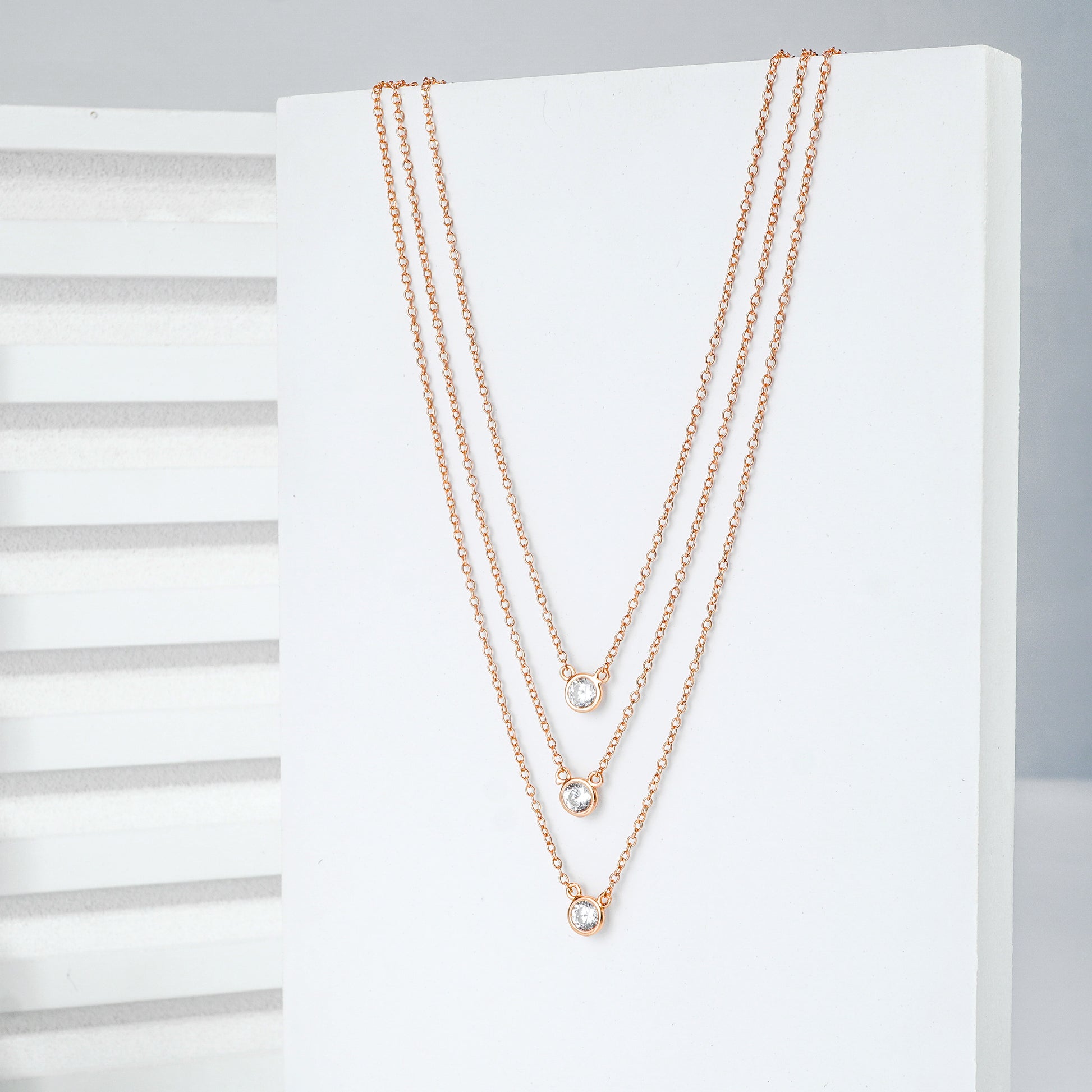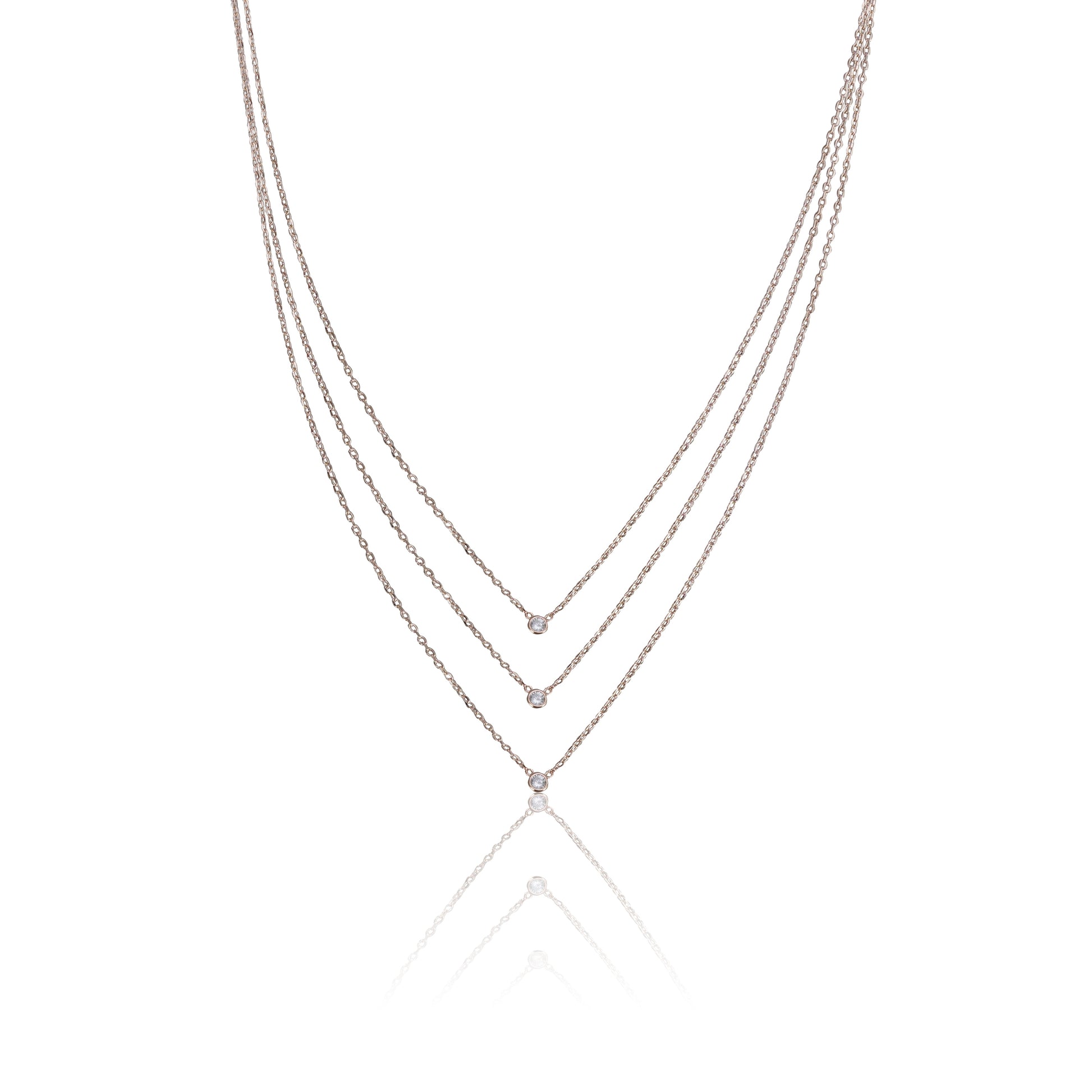 The Trinity Sparkle Chain features three delicate layers, each adorned with a subtle sparkle, creating a polished and refined look.