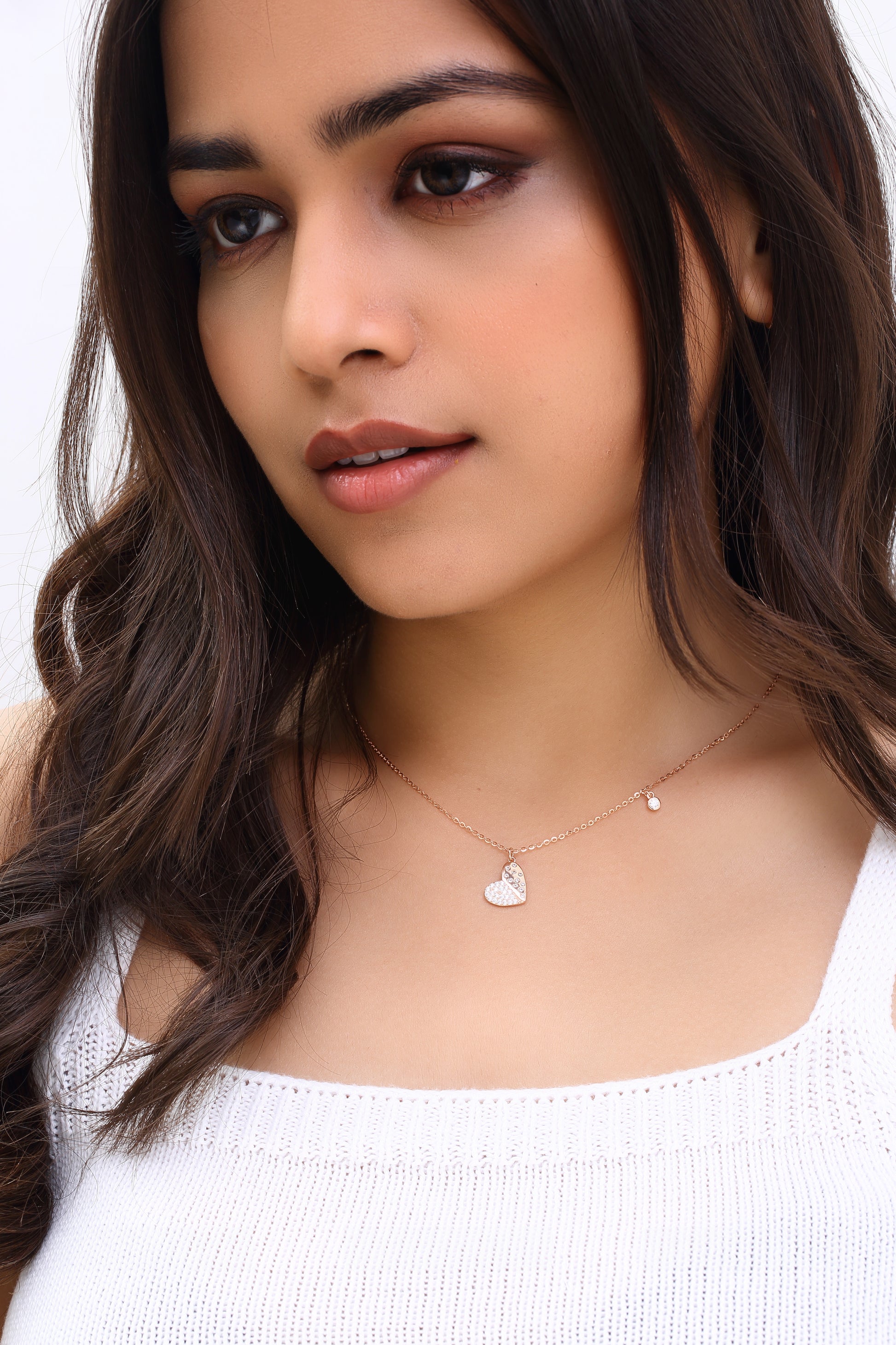 The Serenade Heart Chain features a delicate heart pendant adorned with sparkling accents, offering a touch of romantic elegance that complements your style.