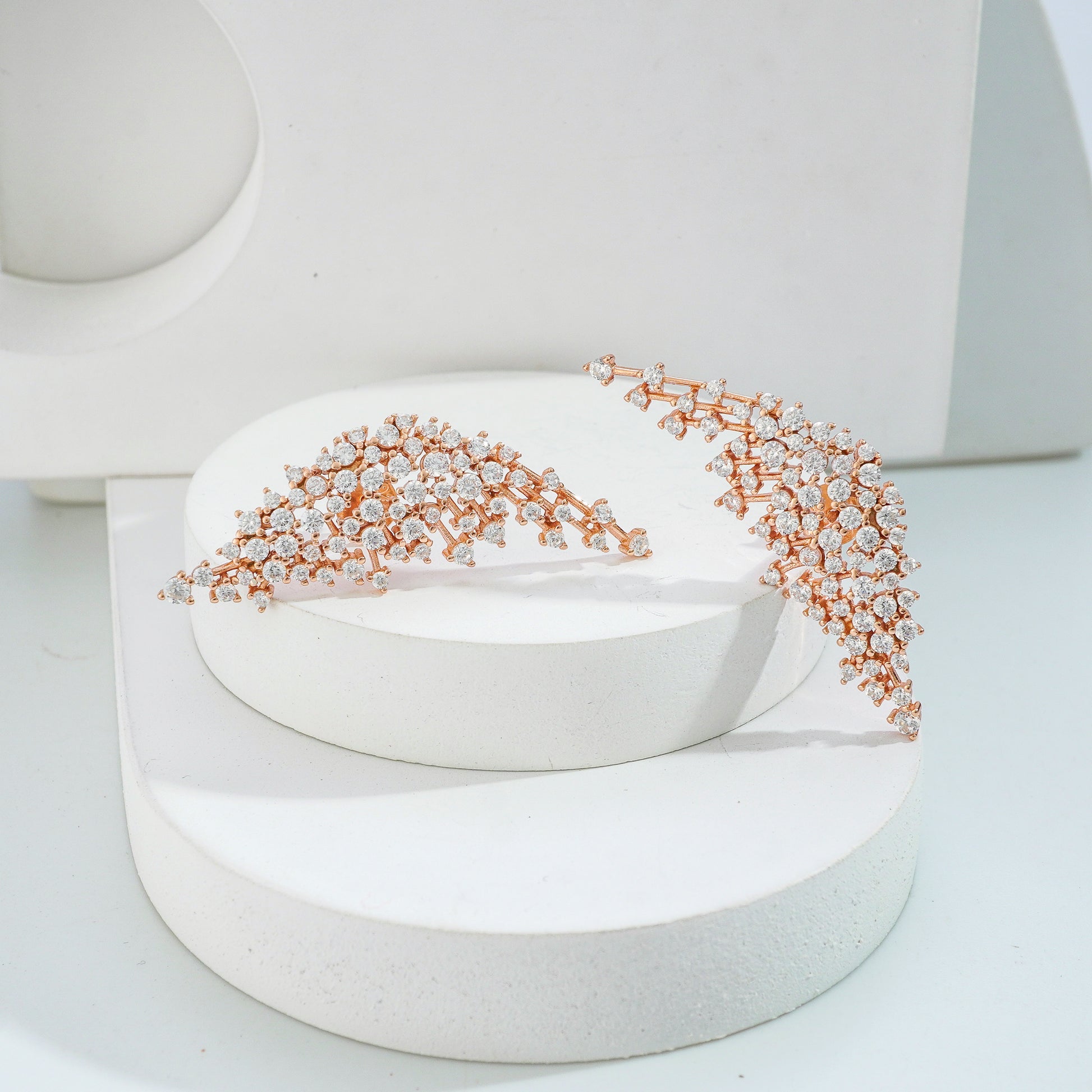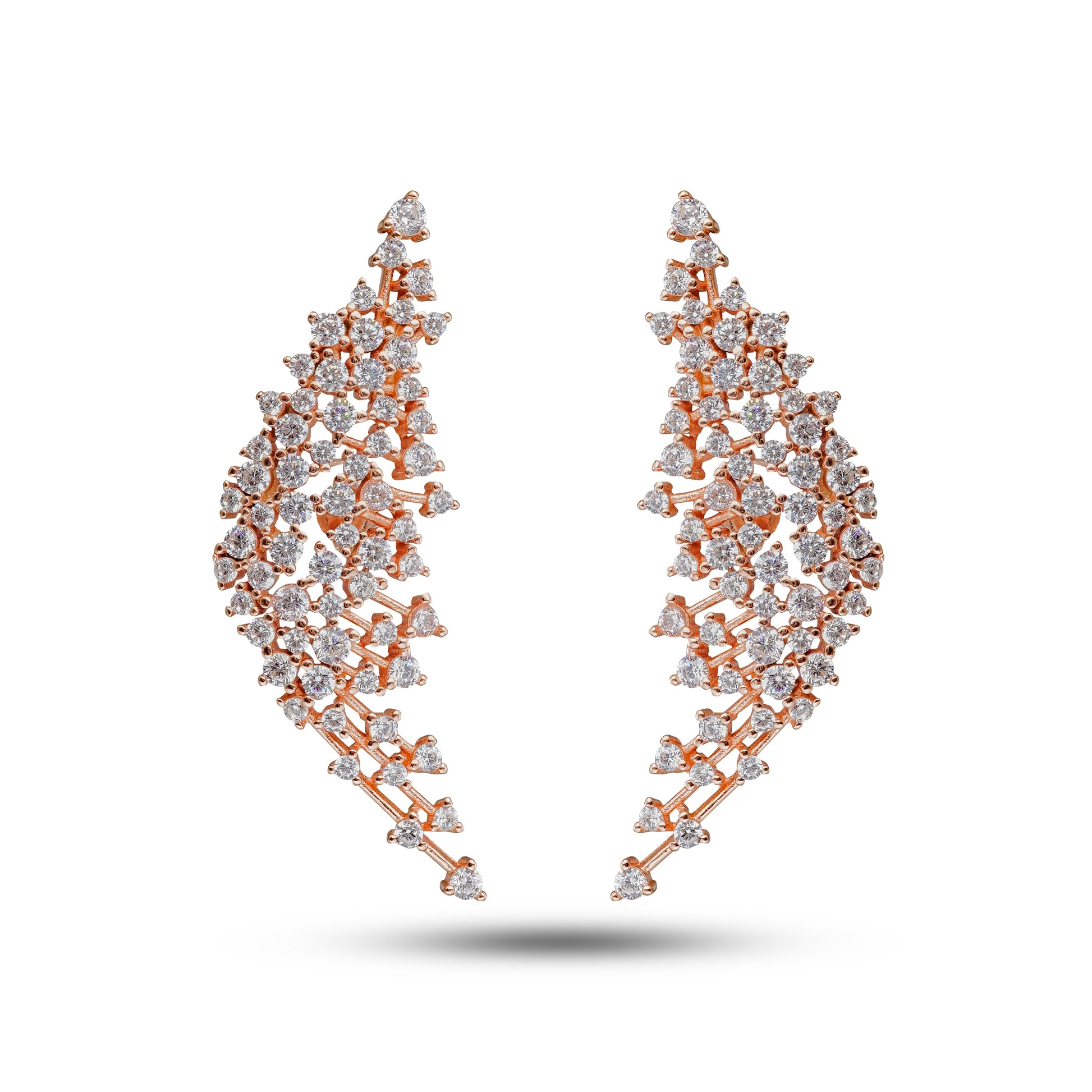 The Stellar Lace Climbers, featuring an intricate lattice design encrusted with sparkling zirconia stones. These earrings create a striking, elongated silhouette that adds a unique and eye-catching element to your ensemble
