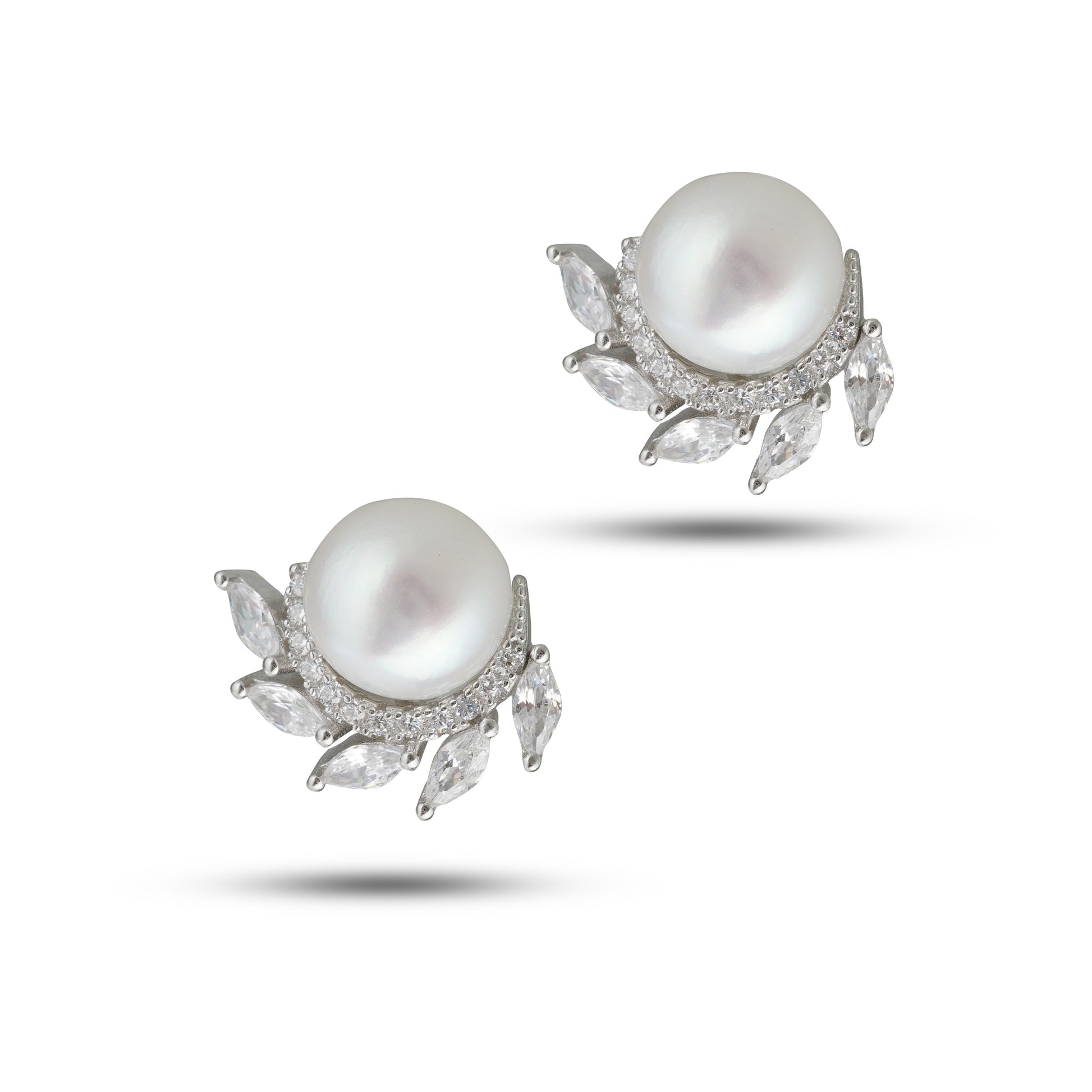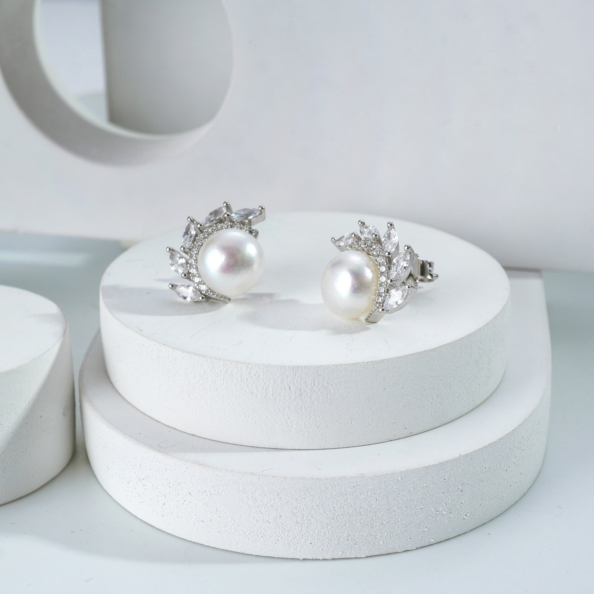 Radiate elegance with our Pearl Radiance Studs, featuring lustrous pearls surrounded by shimmering marquise-cut zirconia for a timeless and sophisticated look