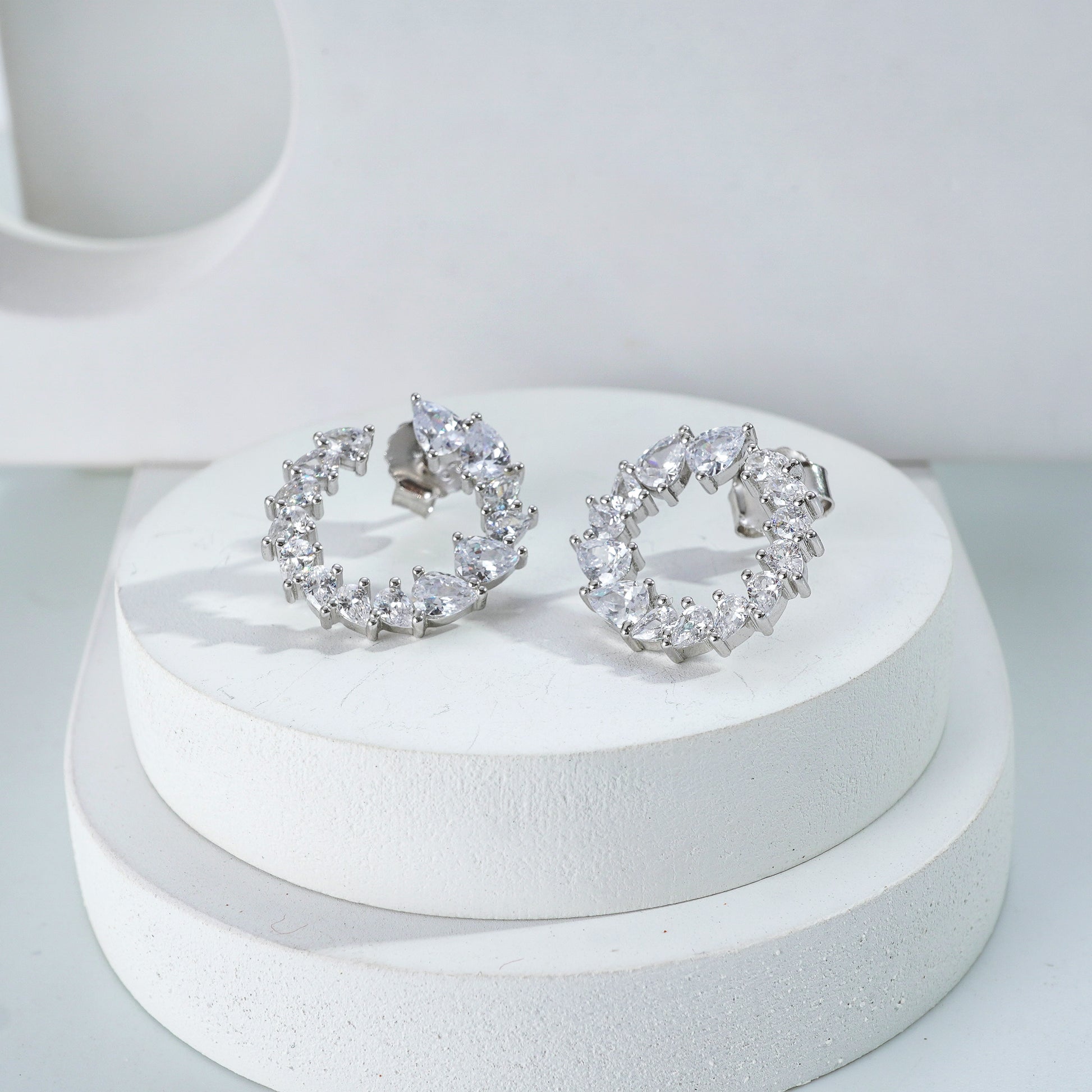 Shine with the Lyra Circles, featuring a unique open-hoop design adorned with pear-cut stones. These earrings offer a contemporary twist to classic elegance.