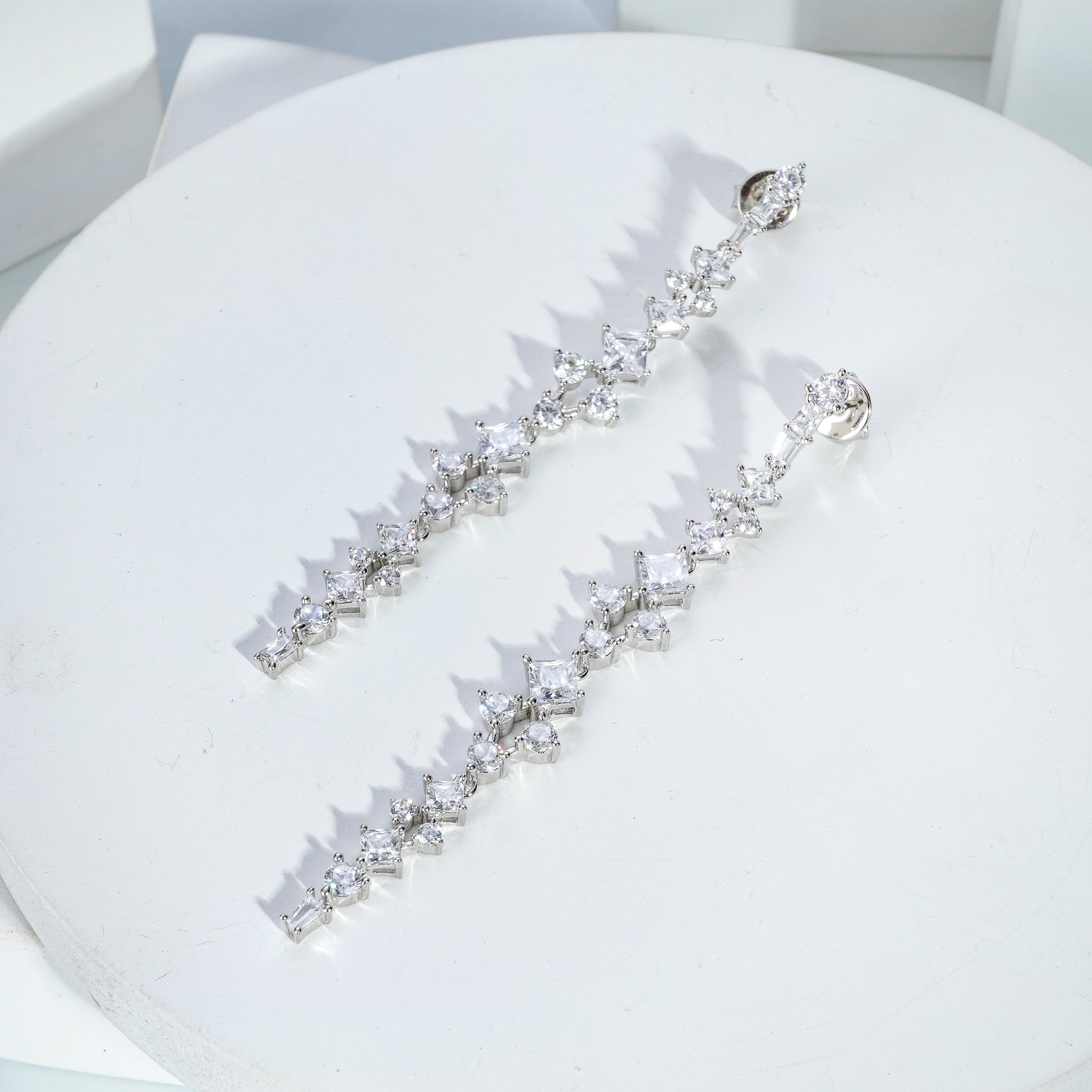 The Starlit Strand Earrings feature a cascading design of sparkling crystals, evoking the brilliance of a starlit night, perfect for adding a touch of celestial elegance to any outfit