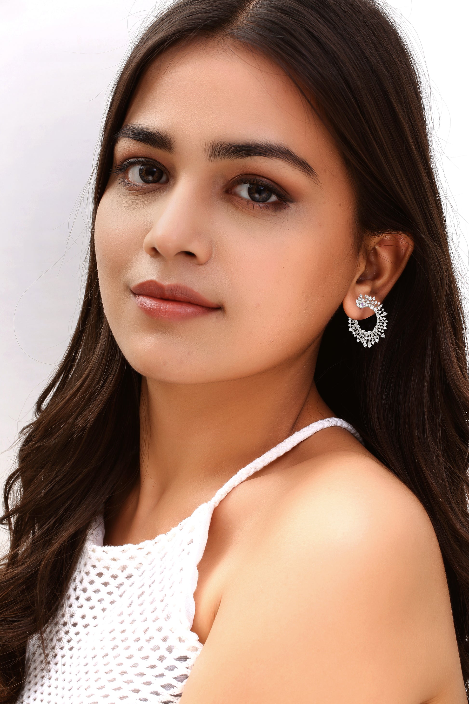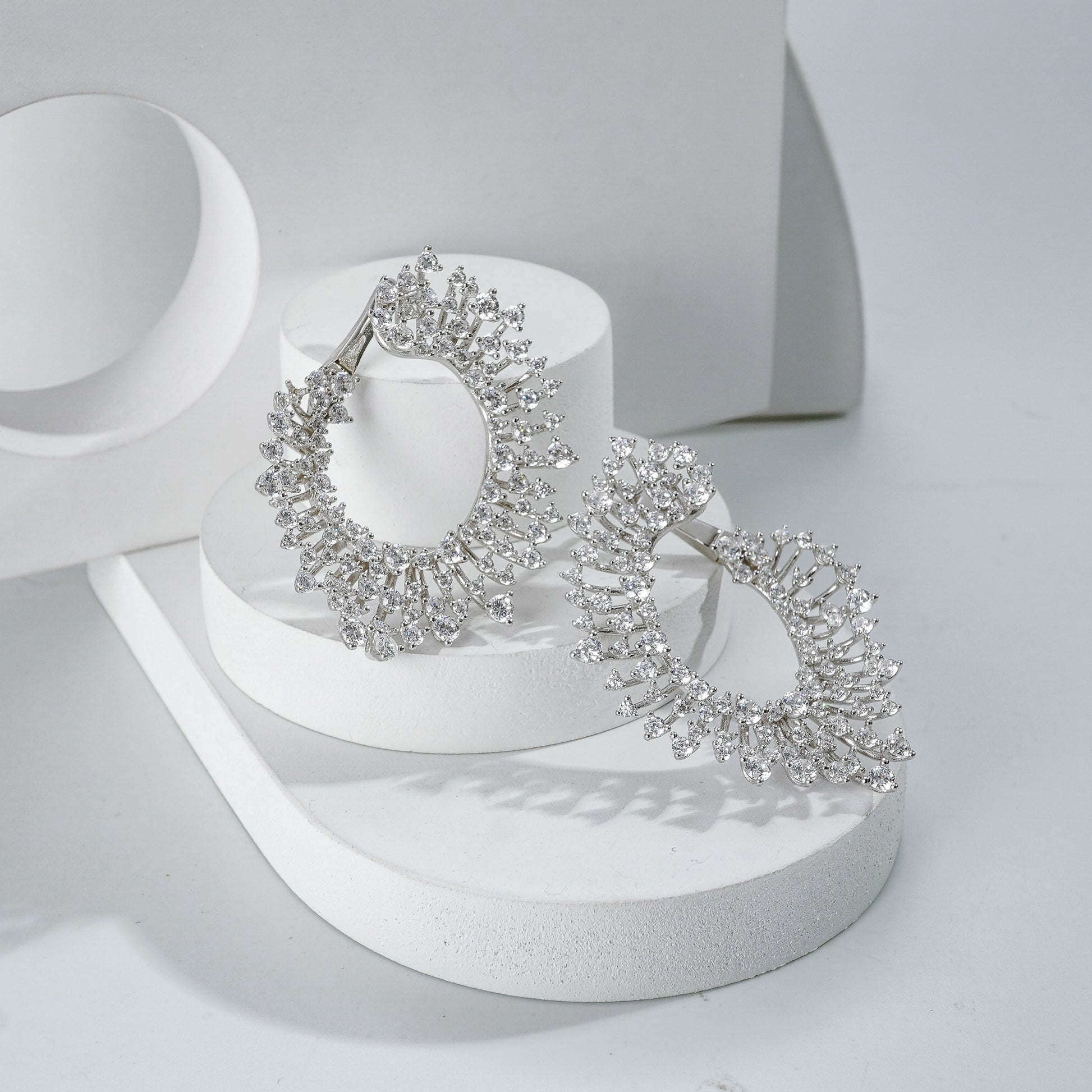 The Starburst Flare Earrings dazzle with their radiant circular design, featuring a stunning array of diamonds that evoke the brilliance of a celestial explosion, adding a touch of luminous elegance to any ensemble