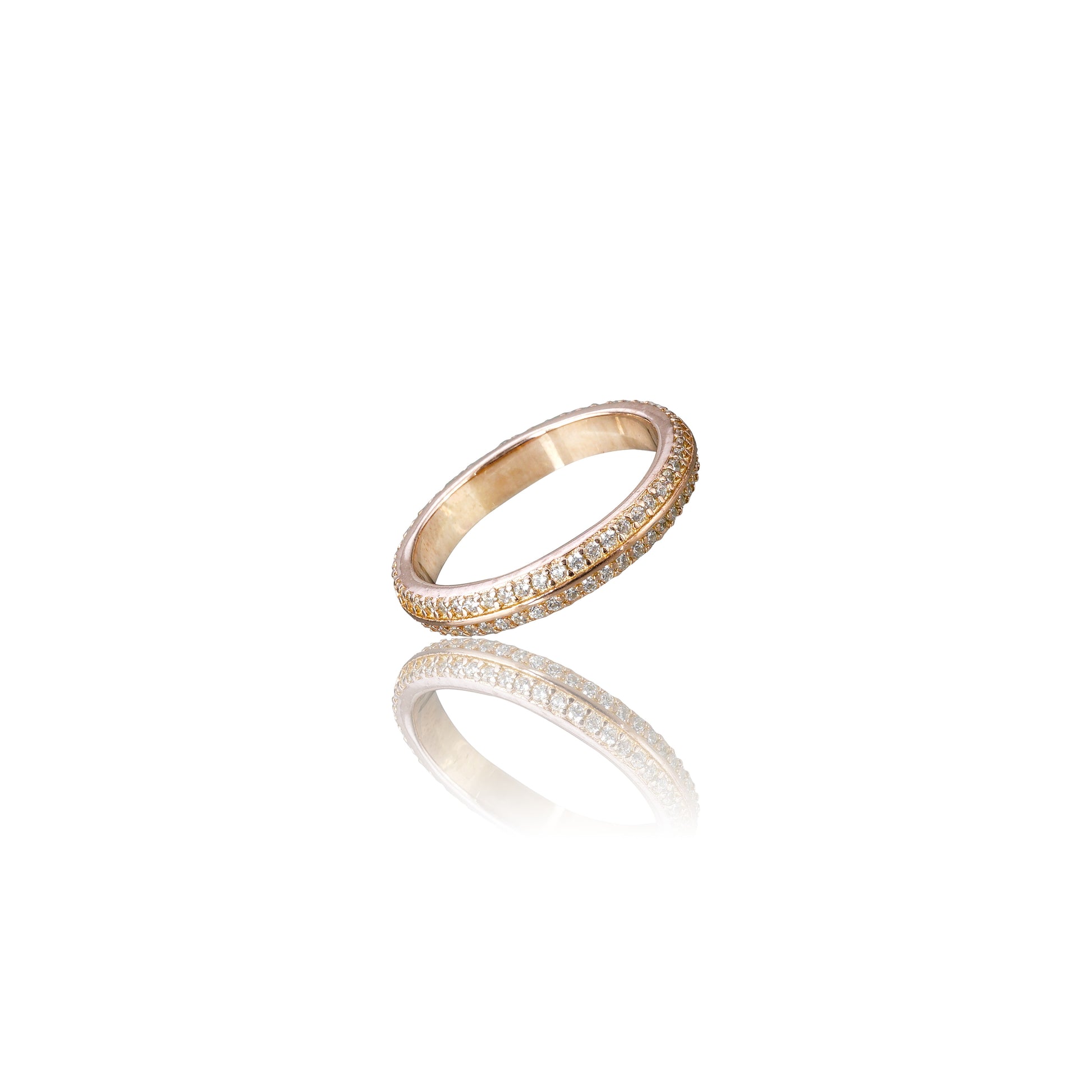 The Pavé Circle Ring features a continuous band of precisely set stones, offering a minimalist design with a focus on symmetry and subtle sparkle.